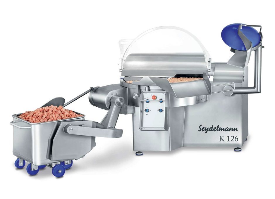 Seydelmann's Industrial Cutters offer a comprehensive range of high-efficiency machines designed for industrial applications. The High-Efficiency Cutters, available with a bowl capacity of 200 to 750 liters, ensure top-notch material chopping and emulsion mixing, optimizing water absorption and reducing the need for spices. The robust stainless steel design enhances durability. Vacuum-Cutters, with bowl sizes ranging from 200 to 1000 liters, extract air during cutting, extending shelf life, and improving emulsion quality by capturing small cell clusters. Cooking-Cutters, also available in bowl sizes of 200 to 1000 liters, combine cutting and cooking in one step, preserving flavor, aroma, and proteins while reducing bacteria content. Vacuum-Cooking-Cutters merge both functions for increased efficiency and higher product quality. The Dry Sausage Cutter Bi-Cut K 552, with two offset knife shafts, achieves homogeneous cutting and mixing, providing superior processing capacity compared to conventional machines with virtually the same space requirement.